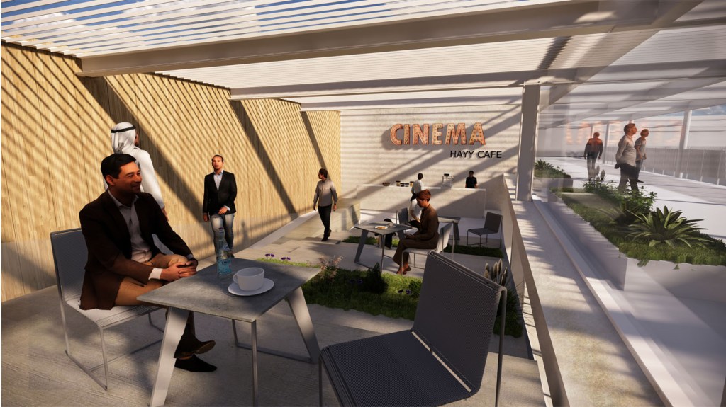 Located at the center of the Hayy building with a direct access from the main courtyard, “The Ramp” serves as the bounding element between the overall building and the cinema through a sequence of experiences that capture the attention of the visitor.